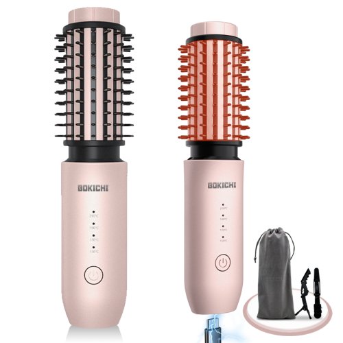 BOKICHI 모발손상 없는 휴대용 음이온 뿌리볼륨 무선 고데기 +집게핀 2개 파우치 1개 증정, 로즈핑크