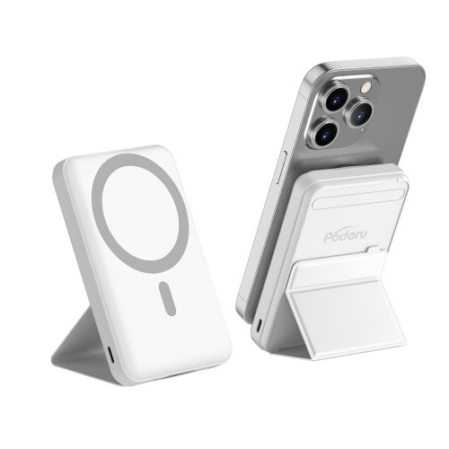 Podoru 맥세이프 보조배터리 PD22.5W 고속충전 10000mAh 대용량 무선 아이폰 보조베터리 휴대용 거치대, 화이트