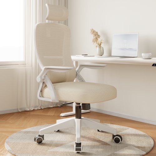 티야드 자세교정 공부 사무용 의자 허리받침 컴퓨터 메쉬 사무실의자, 화이트 + 베이지, one size