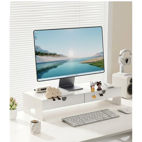 조립 필요없는 일체형 고강도 스틸 모니터 받침대, 화이트