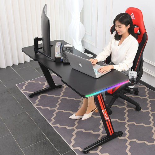 아우스 위너렉스 Z형 올인원 LED 컴퓨터책상 게이밍책상 사무용책상 학생책상 서재책상 1인용 2인용 800 1000 1200 1400 1600, RGB블랙, 1200mm
