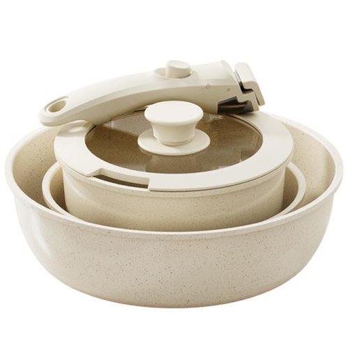 AURORA 냄비세트 인덕션 가스레인지 겸용 독일 기술 안심 코팅 공간 절약 손잡이 주방 조리기구 8종 냄비세트, 흰색, 1세트, 냄비세트 8P