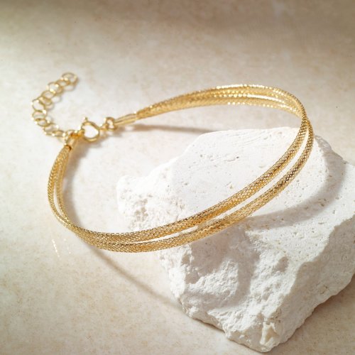 펠리체골드 18K 스네이크 더블 팔찌 (+선물포장) 레이어드 데일리 두줄 기념일 여성 스네이크 메쉬 우정팔찌 고급 이태리 금 골드 체인, 옐로우 골드