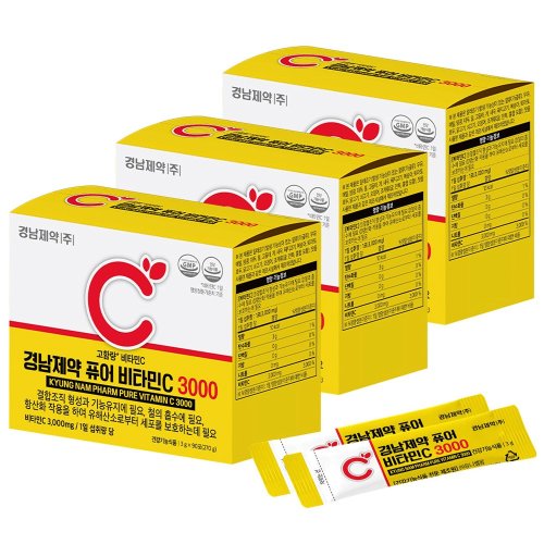 경남제약 퓨어 비타민C 3000 고함량 90포, 270g, 3개