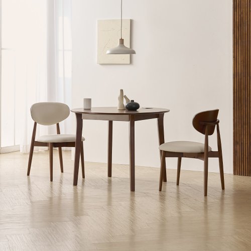 라로퍼니처 플레인 원형 1000 고무나무 원목 식탁 세트, 식탁+의자2