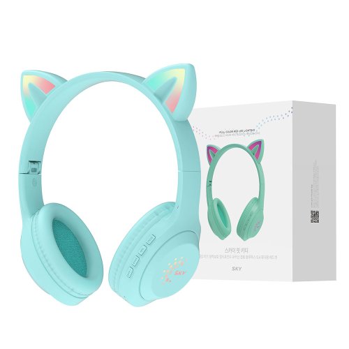 SKY 아동용 핏 키티 휴대용 유무선 겸용 블루투스 헤드셋 IM-H26 페퍼민트 그린 12시간 멀티단자