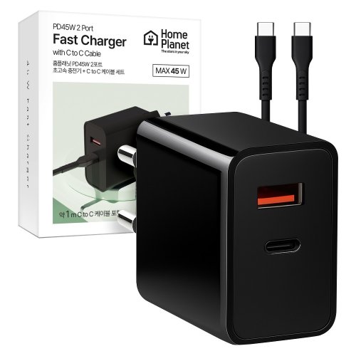 홈플래닛 45W PD PPS 2포트 초고속 충전기 + CtoC 케이블, 블랙, 1세트