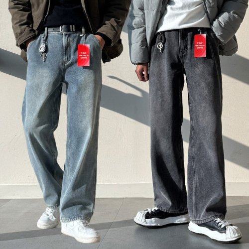 남자 세미와이드 샌드워싱 뒷밴딩 데님 청바지 팬츠 빅사이즈, 그레이, L(32)