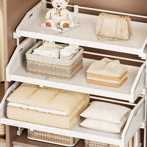 홈비 적층형 슬라이딩 옷장 수납 옷정리 트레이 선반, 1개, 화이트(높은 대형)