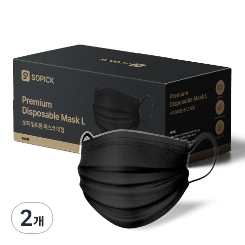 쏘픽 일회용 마스크 대형, 블랙, 2개, 50매입