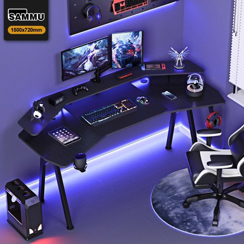 SAMMU 날개형 컴퓨터 이중 레이어 게임 다기능 스트리머 학습 사무용 책상 카본 섬유 책상 1500*720, 검은색
