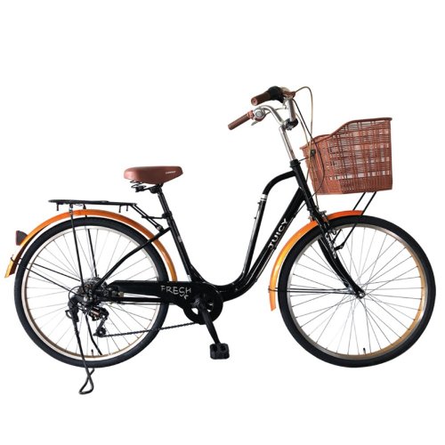 [지멘스 자전거] 여성 자전거 프레쉬 클래식 자전거 24인치 26인치 7단변속 스테인리스볼트 알루미늄 핸들, 150cm, 1개, [조립완료]프레쉬24인치_블랙/빈티지오렌지, 완전조립 및 테스트 후 발송