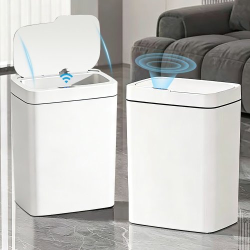 PercyLy [1+1] 자동 센서 휴지통 화장실 기저귀 냄새차단 쓰레기통, 화이트