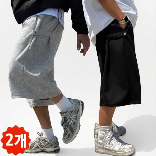 빠델 [당일출고/1+1] 7부 사이드스냅 버뮤다팬츠 벌룬 와이드 반바지 빅사이즈스웻 팬츠 츄리닝, 그레이+블랙, 1번