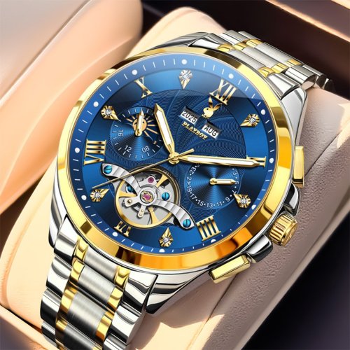 PLAYBOY 명품 브랜드 남자 기계식 시계 오토매틱 비즈니스 손목시계 선물용, 금청색