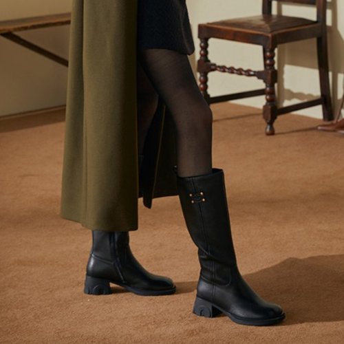 따뜻한 여성용 컴포트 양가죽 기모 롱부츠 5.5cm, 240, 블랙