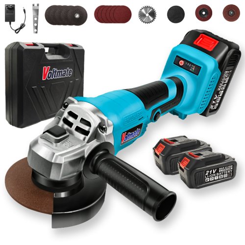 VoltMate 고출력 무선 전동 그라인더 BLDC 배터리 2개 충전식 3단 조절 가능 액세서리 풀세트 툴박스, 불루