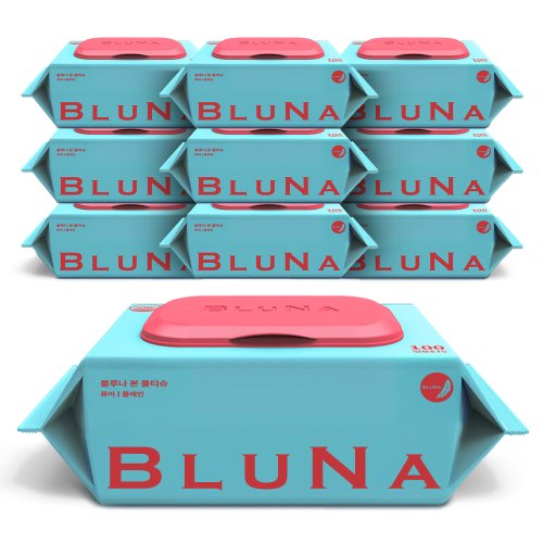 블루나 본 퓨어 저자극 물티슈 캡형, 10개, 100매, 40g