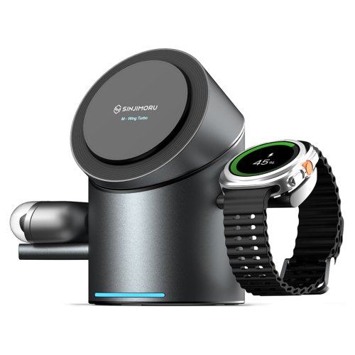 신지모루 Qi2 3in1 무선충전 맥세이프 M 윙 터보 갤럭시 워치 거치대, 블랙메탈, 1개