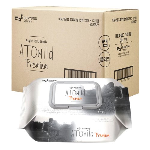 아토마일드 프리미엄 유아물티슈 캡형, 72매, 12개