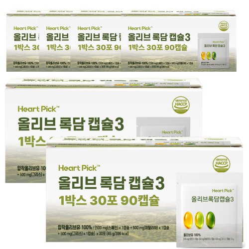 올리브오일 캡슐 3 록담 지중해 올리브 90캡슐 하트픽, 6개, 30회분