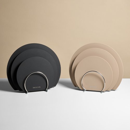 트루쿡 시그니처 플렉스 TPU 도마, 1개, TPU 도마 3종 + 원형 도마 거치대, 블랙