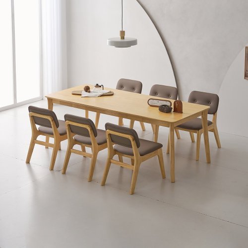 라로퍼니처 라세티 1900 고무나무 원목 패밀리 6인 낮은 식탁 세트, 식탁+의자6