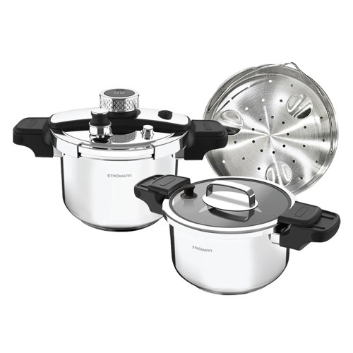스트로만 스마트 압력솥 4.5L + 3L + 압력 뚜껑 + 진공 뚜껑 + 찜판 멀티 세트, 스텐, 1세트