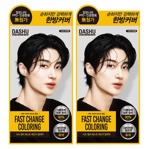다슈 컬러 패스트 체인지 새치전용 염색제, 흑색, 2개