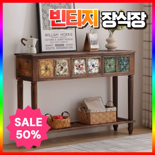 우암가구 빈티지 원목 수납장 콘솔 테이블 장식장 거실 현관 입구 레트로, C.116cm