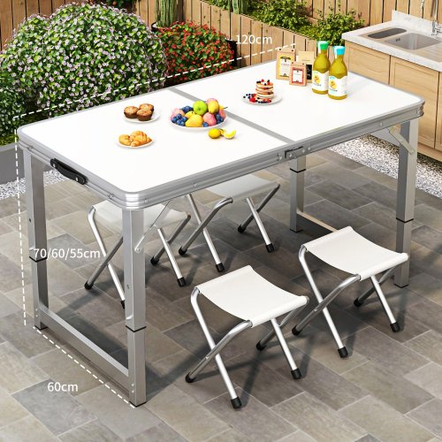 Ageye 캠핑 아웃도어 접이식 미니 테이블 경량 좌식 사이드 폴딩 테이블, 120x60x70네 개의 의자를 포함한다, 은 백색, 120cm