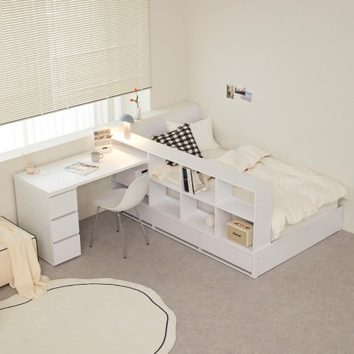 파로마 큐브 책장형 수납침대+책상포함 슈퍼싱글 프레임만, 화이트