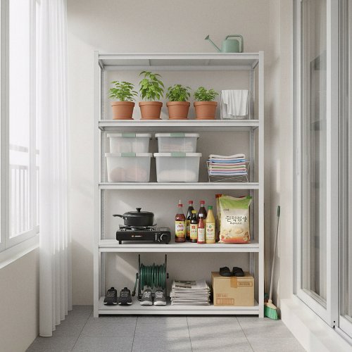 체인지업 에코랙 철제선반 무볼트 앵글선반 베란다선반 조립식 다용도 수납 선반, 5단, (가로1200x깊이400x높이1800), 백색