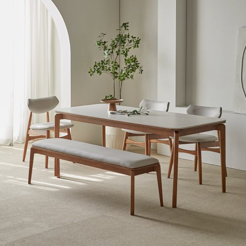 파로마 리샤르 세라믹 원목식탁 1800 6인용 + B의자 + 벤치 세트 방문설치, 베이지상판+월넛원목, 일반 3 + 벤치 1