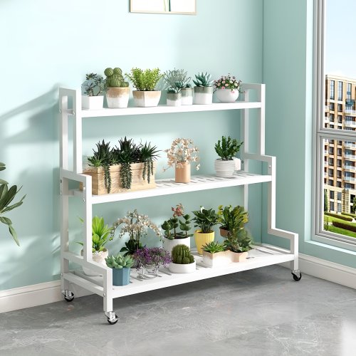 DP동봉국제무역 화분진열대 이동식 정리 선반 스텝형 대형 다용도 실내 베란다, 3단, 화이트 100cm