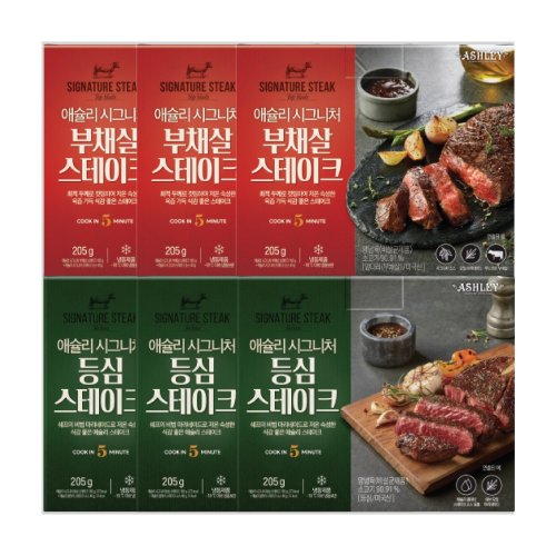 애슐리 시그니처 스테이크 (부채살 3pk+등심 3pk)저온 숙성 냉동 캠핑 음식 캠핑용 추천 미국산 구이용 소스포함