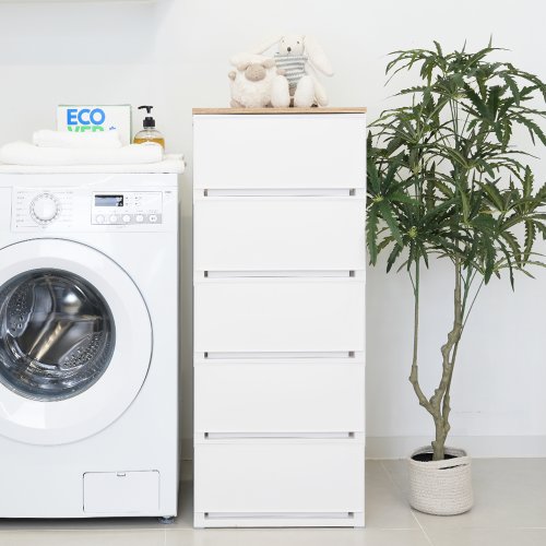 코멧 국내생산 우드상판 모던 서랍장, 화이트, 5단