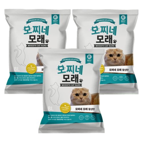 모찌네 응고형 고양이 모래, 8L, 3개, 활성탄