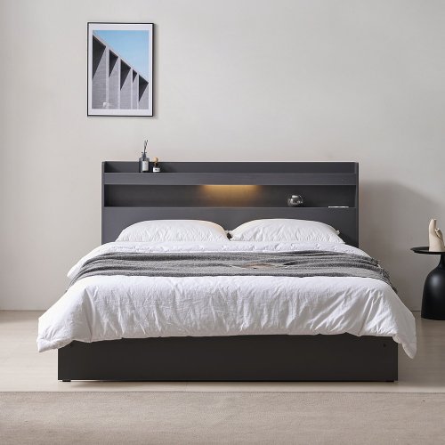 [수도권 지정배송] 아너스 LED 일반형 슈퍼싱글/퀸 침대프레임 (매트제외), 퀸, 그레이