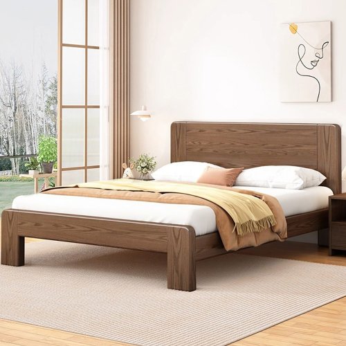 원룸 심플 원목 침대 북유럽 높은 등받이 침대 프레임, 퀸, 브라운(침대프레임 단품)