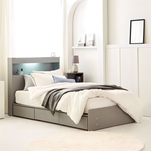 동서가구 이즈 카이 1단 3서랍 LED 수납침대 프레임 단품 방문설치, 그레이, 슈퍼싱글
