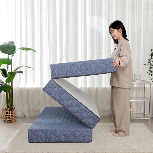 코트니아 국내산 3단 접이식 매트리스 생활방수 탄탄한 원룸 바닥 수면매트 자취 접는 침대 매트릭스 토퍼, 15cm, 네이비, SS(110cm*200cm)