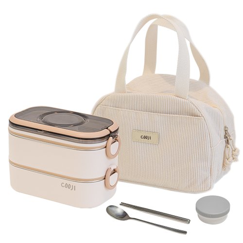 쿠지 2단 스텐도시락통 전자레인지 밀프랩 가방 세트, 1개, 오트밀