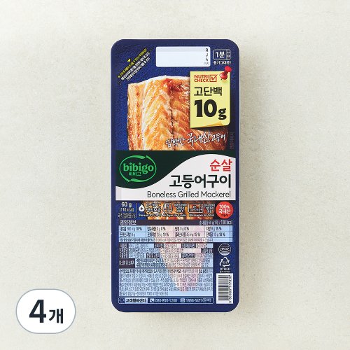 비비고 고단백 순살 고등어구이, 60g, 4개