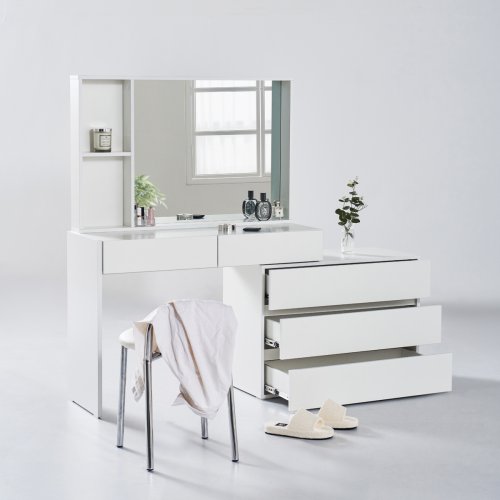 도모 비앙트 확장형 수납 화장대 + 거울 세트 방문설치, 화이트