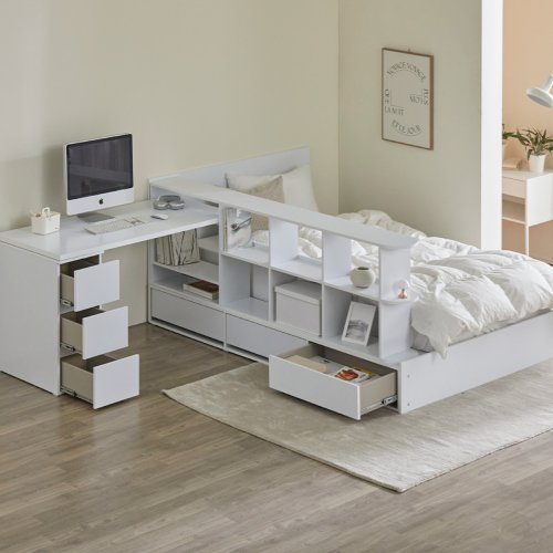 [리뷰이벤트] 파로마 큐브B 책상 책장선반 파티션 수납침대 학생침대 풀세트 SS 프레임만, 화이트, 슈퍼싱글, 책상형 B02