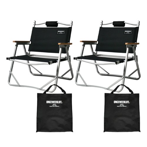 원스위크라이프 접이식 캠핑의자 + 가방 세트, 블랙, 2세트