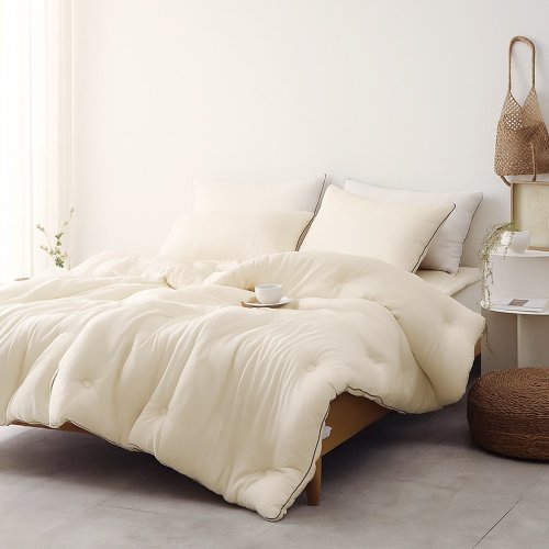 국내제조 띵스룸 크림슈 텐셀모달100 항진드기 향균 옥수수솜 이불세트, 이불+패드+베개커버 세트, 퀸(Q), 크림슈 버터크림