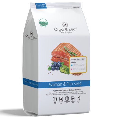 오가앤리프 유기농 가수분해 연어&아마씨 피부 눈물 관절 알러지 강아지 사료, 연어, 5.6kg, 1개