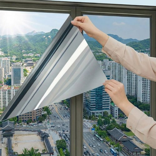 앞날창창 물로 붙이는 창문 사생활 보호필름 햇빛 가리개 시트지, 90x500cm, 실버